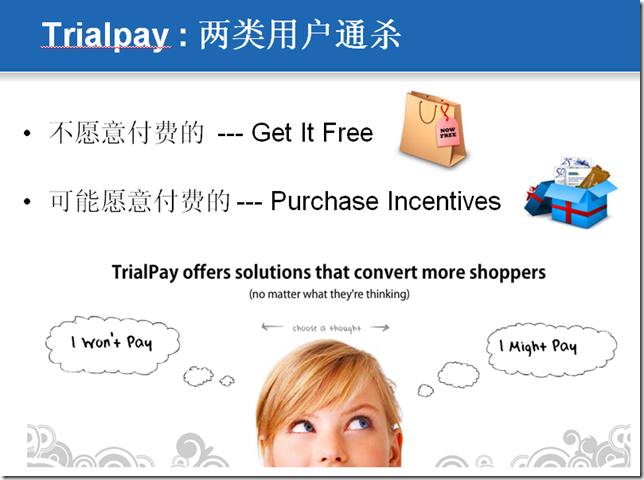 对于价格极其敏感的用户来说,Trialpay的Get It Free方案能提供三赢: