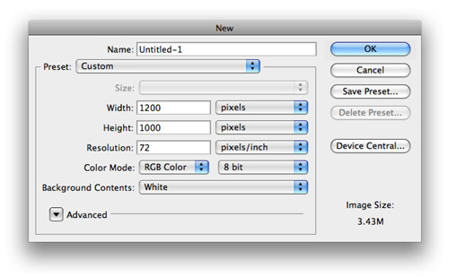 1.打开Photoshop和创建一个新文档的尺寸1200 × 1000。