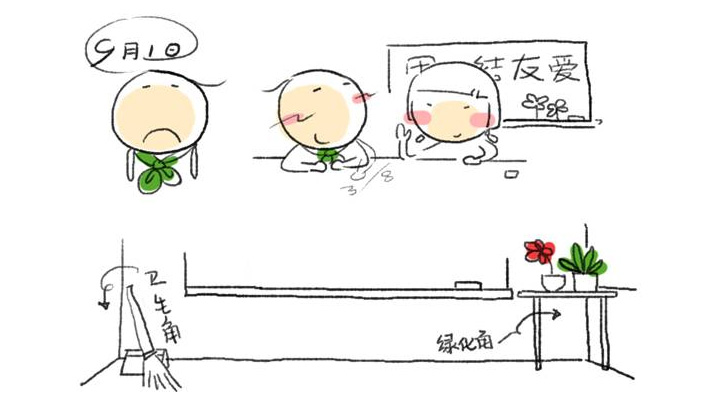 我们做了个小脑爆,并提取一些画面场景关键词:教室卫生角,绿化角,等校车;共鸣点:新学期同学见面,三八线,希望小学,布置教室等。最终,把画面定为教室后的绿化角场景,主要元素为同学们带来的绿化布置教室,同时以植物的郁郁葱葱带给积极向上的乐观情绪。